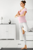 Młoda dziewczyna co ćwiczeń fitness pomieszczeniu