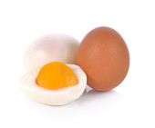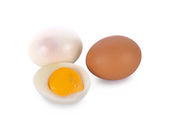 Pojedyncze brązowe jajko kurze izolowane na białym tle