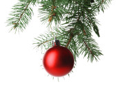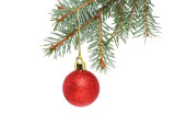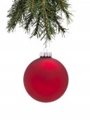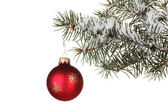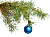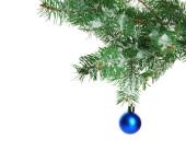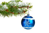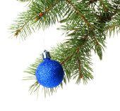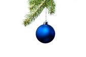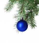 Niebieski bombki na gałęzi choinki