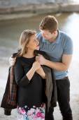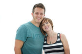 Zbliżenie szczęśliwy uśmiechający się para stwarzające czerwone rozgwiazdy