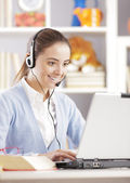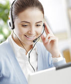 ładny biznes klienta usługi kobieta uśmiechając się, komputer na foregr