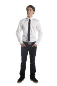 młody nastolatek w niebieską koszulę, dżinsy i krawat