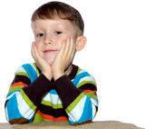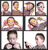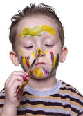 szczęśliwy małego chłopca z cute twarz plamy z farby
