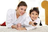 Zdjęcie "Szczęśliwy blondynka młoda matka z synem w łóżku" może być wykorzystywane do celów osobistych i komercyjnych zgodnie z warunkami zakupionej licencji Royalty-free. Obraz jest dostępny do pobrania w jakości wysokiej rozdzielczości do 5760x3840.