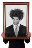 portret szczęśliwy i przystojny mężczyzna na białym tle. łapka.
