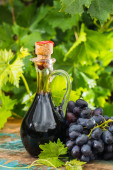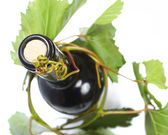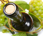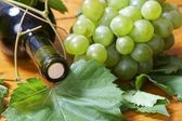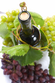 butelka wina i młodych winogron winorośli
