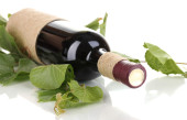 butelka wina i młodych winogron winorośli