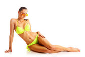 dziewczyna w plaży nosić okulary z ciała w profilu