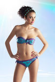 dziewczyna w bikini z okulary, obie ręce w pobliżu twarzy