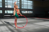 dziewczyna w sukience taniec z sali gimnastycznej hoop