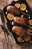 stek wołowy z grilla z rozmarynem na bliska papieru. poziome