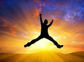 Sylwetka szczęśliwy człowiek skoki