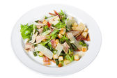 Sałatka jarzynowa z szynka, parmezan i pomidorkami.