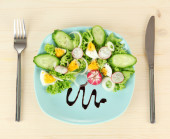 Zdjęcie "Przydatne pokroić warzywa na płycie w formie serca na drewnianym stole widok z góry" może być wykorzystywane do celów osobistych i komercyjnych zgodnie z warunkami zakupionej licencji Royalty-free. Obraz jest dostępny do pobrania w jakości wysokiej rozdzielczości do 5760x3840.