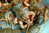 Owoce morza na lodzie na targu rybnym