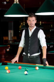 bilard przystojny młody mężczyzna z cue koszula i krawat