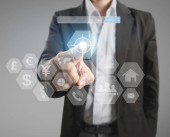 Biznesmen prasy interfejs cyfrowy znak dolara