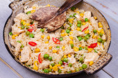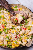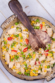 Zdjęcie "Kurczak z ryżem, groszek, kukurydza i chili" może być wykorzystywane do celów osobistych i komercyjnych zgodnie z warunkami zakupionej licencji Royalty-free. Obraz jest dostępny do pobrania w jakości wysokiej rozdzielczości do 5760x3840.