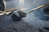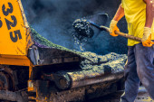 Ciężka praca na asfalt budowa