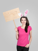 Piękna młoda kobieta jak Zajączek wielkanocny