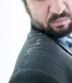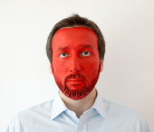 Młody mężczyzna portret z czerwoną twarzą Malowaną