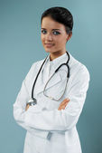 młody opieka lekarza lub pracowników służby zdrowia w białym mundurze,