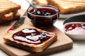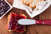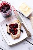 Toast z dżemem na drewnianym stole