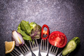 Asortyment świeżych warzyw z bliska na stół czarny