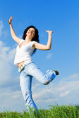 Szczęśliwa młoda kobieta skacze