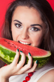 Zdjęcie "kobieta moda z arbuza na zielonym tle" może być wykorzystywane do celów osobistych i komercyjnych zgodnie z warunkami zakupionej licencji Royalty-free. Obraz jest dostępny do pobrania w jakości wysokiej rozdzielczości do 5760x3840.