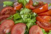 Sałatka z pomidorów wesoły i zielonych liści