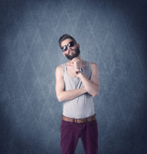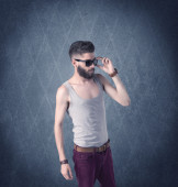 Młody mężczyzna wykazujący mięśnie