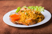 Smaczne dania z Turcji mięso z ryżem i surówką liści i g