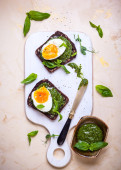 Zdjęcie "Jajko na twardo z pesto na grzanki" może być wykorzystywane do celów osobistych i komercyjnych zgodnie z warunkami zakupionej licencji Royalty-free. Obraz jest dostępny do pobrania w jakości wysokiej rozdzielczości do 5760x3840.