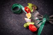 Świeżych warzyw mieszanych na widelec na czarnym tle