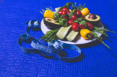 Świeżych warzyw mieszanych na widelec na czarnym tle