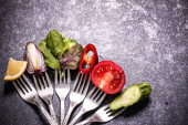 Świeżych warzyw mieszanych na widelec na czarnym tle