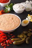 Amerykańska sos tysiąca wysp z bliska składników. Ho