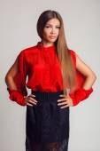 piękna kobieta uśmiechający się z długo błyszczące włosy