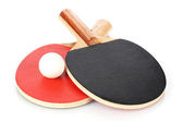 Rakiety do ping-ponga i piłka, izolowane na biało