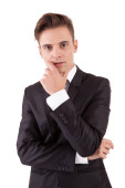 portret przystojny mężczyzna myślenia na białym tle. łapka
