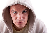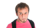 człowiek się odwrócić, patrząc z pogardą, na białym tle na białym tle. łapka.