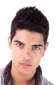 nieszczęśliwy chłopiec z kapturem na białym tle. łapka