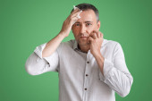 portret przystojny mężczyzna myśli, na czarnym tle. łapka