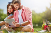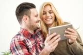 Zdjęcie "Szczęśliwa młoda para za pomocą tabletu" może być wykorzystywane do celów osobistych i komercyjnych zgodnie z warunkami zakupionej licencji Royalty-free. Obraz jest dostępny do pobrania w jakości wysokiej rozdzielczości do 5760x3840.