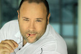 portret przystojny mężczyzna na białym tle na czarnym tle. łapka.