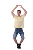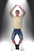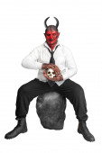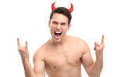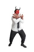 diabeł, ze ręce się jako znak przejść, wyjeździe, obronny, na białym tle na białym tle. łapka