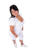 szczęśliwy duże kobieta latin, z kciuk, na białym tle na wyśmienity biały