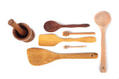 drewniane naczynia kuchenne izolowane na białym tle