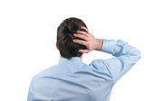 młody biznesmen w koszuli odpoczynku w urzędzie na biały backg